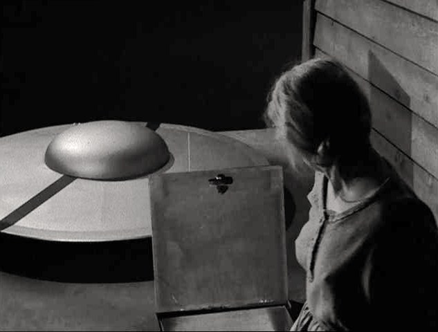 “The Invaders” episode, where a mute farm woman fends off the relentless attack of tiny spacemen with ray guns until she beats them and their spaceship to pulp with an ax and we hear their final distress signal calling… Earth. These perspective-shift stories might seem predictable today, but they weren’t back in the fifties and sixties when writers such as Matheson, Rod Serling and Charles Beaumont invented them.